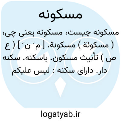 ( مسکونة ) مسکونة. [ م َ ن َ ] ( ع ص ) تأنیث مسکون. باسکنه. سکنه دار. دارای سکنه: لیس علیکم جناح أن تدخلوا بیوتاً غیرمسکونة فیها متاع لکم واﷲ یعلم ما تبدون و ما تکتمون. ( قرآن 29/24 ). رجوع به مسکون شود.
