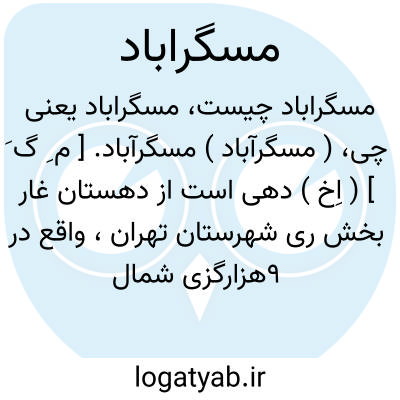 ( مسگرآباد ) مسگرآباد. [ م ِ گ َ ] ( اِخ ) دهی است از دهستان غار بخش ری شهرستان تهران، واقع در 9هزارگزی شمال خاوری شهر ری و 29هزارگزی شمال راه شوسه تهران به سمنان. آب آن از چشمه و راه آن مالرو است و از شوسه ماشین به ده می توان برد. ( از فرهنگ جغرافیایی ایران ج 1 ).