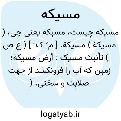 ( مسیکة ) مسیکة. [ م َ ک َ ] ( ع ص ) تأنیث مسیک: أرض مسیکة؛ زمین که آب را فرونکشد از جهت صلابت و سختی. ( منتهی الارب ) ( آنندراج ) ( ناظم الاطباء ).