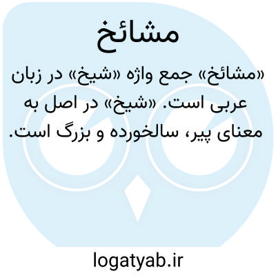 «مشائخ» جمع واژه «شیخ» در زبان عربی است. «شیخ» در اصل به معنای پیر، سالخورده و بزرگ است، و در گذر زمان در فرهنگ اسلامی و فارسی به بزرگان دینی، عارفان، عالمان و رهبران معنوی اطلاق شده است. بنابراین، این کلمه یعنی پیران و بزرگان یک قوم یا جماعت، به‌ویژه اهل علم و معرفت.