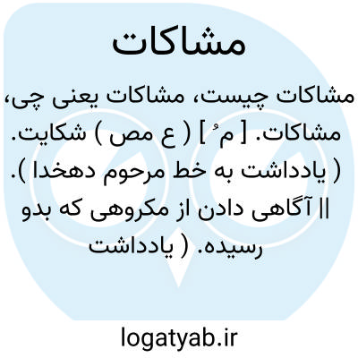 مشاکات. [ م ُ ] ( ع مص ) شکایت. ( یادداشت به خط مرحوم دهخدا ). || آگاهی دادن از مکروهی که بدو رسیده. ( یادداشت به خط مرحوم دهخدا ).