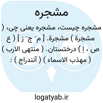( مشجرة ) مشجرة. [ م َ ج َ رَ ] ( ع ص، اِ ) درختستان. ( منتهی الارب ) ( مهذب الاسماء ) ( آنندراج ): أرض مشجرة؛ زمین درخت دار و بسیاردرخت. ( از ناظم الاطباء ). زمین بسیاردرخت. ( از اقرب الموارد ).