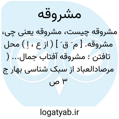 مشروقه. [ م َ ق َ ] ( از ع، اِ ) محل تافتن: مشروقه آفتاب جمال... ( مرصادالعباد از سبک شناسی بهار ج 3 ص 25 ).