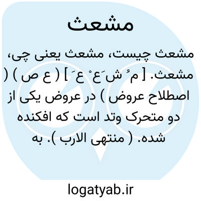 (مُ شَ عَّ ) [ ع. ] (اِمف. ) ۱ - پراکنده. ۲ - ژولیده شده، آشفته گردانیده. ۳ - در علم عروض «مفعولن » چون از «فاعلاتن » خیزد، آن را مشعث خوانند.
