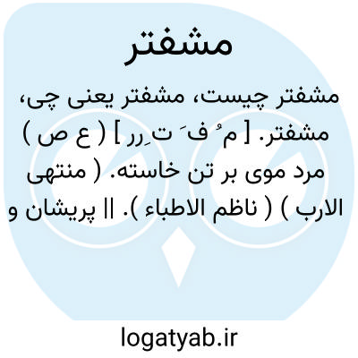 مشفتر. [ م ُ ف َ ت ِرر ] ( ع ص ) مرد موی بر تن خاسته. ( منتهی الارب ) ( ناظم الاطباء ). || پریشان و لرزان. ( از اقرب الموارد ) ( از محیطالمحیط ). || مرد دامن برزده و برپای خاسته. ( منتهی الارب ) ( ناظم الاطباء ). مشمر. ( اقرب الموارد ) ( محیطالمحیط ). || غبار برخاسته و بلند شده. ( ناظم الاطباء ).