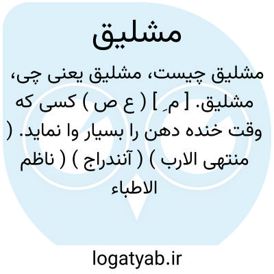 مشلیق. [ م ِ ] ( ع ص ) کسی که وقت خنده دهن را بسیار وا نماید. ( منتهی الارب ) ( آنندراج ) ( ناظم الاطباء ). کسی که هنگام خنده دهان را باز کند. ( از اقرب الموارد ).