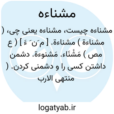 لغت نامه دهخدا ( مشناءة ) مشناءة. [ م َن َ ءَ ] ( ع مص ) مَشْنَاء. مَشنوءة. دشمن داشتن کسی را و دشمنی کردن. ( منتهی الارب ) ( از اقرب الموارد ).