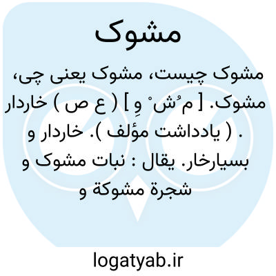 مشوک. [ م ُش ْ وِ ] ( ع ص ) خاردار. ( یادداشت مؤلف ). خاردار و بسیارخار. یقال: نبات مشوک و شجرة مشوکة و مکان مشوک؛ ای کثیرالشوک فیه السحاء و القتاد و الهراس. ( از محیطالمحیط ) ( از اقرب الموارد ). مشوکة. ( ناظم الاطباء ). رجوع به مشوکة شود. مشوک. [ م َ ] ( ع ص ) علت سرخی زده و بیماری شری. ( منتهی الارب ) ( آنندراج ) ( از محیطالمحیط ). گرفتاری بیماری شوکة یا شری. ( ناظم الاطباء ).