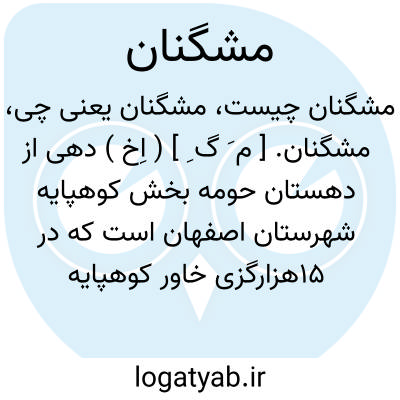 مشگنان. [ م َ گ ِ ] ( اِخ ) دهی از دهستان حومه بخش کوهپایه شهرستان اصفهان است که در 15هزارگزی خاور کوهپایه متصل به شوسه اصفهان به یزد واقع است و 911 تن سکنه دارد. ( از فرهنگ جغرافیائی ایران ج 10 ).