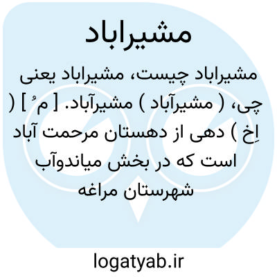 ( مشیرآباد ) مشیرآباد. [ م ُ ] ( اِخ ) دهی از دهستان مرحمت آباد است که در بخش میاندوآب شهرستان مراغه واقع است و 226 تن سکنه دارد. ( از فرهنگ جغرافیائی ایران ج 4 ).