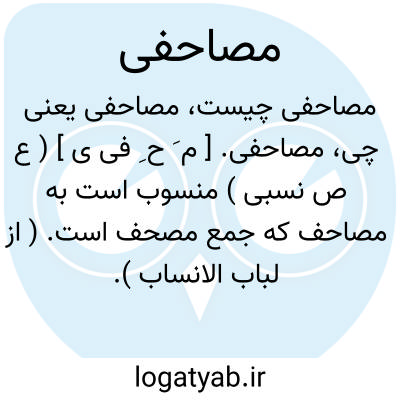 مصاحفی. [ م َ ح ِ فی ی ] ( ع ص نسبی ) منسوب است به مصاحف که جمع مصحف است. ( از لباب الانساب ).