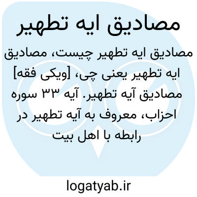[ویکی فقه] مصادیق آیه تطهیر. آیه ۳۳ سوره احزاب، معروف به آیه تطهیر در رابطه با اهل بیت پیامبر اکرم (صلی الله علیه و آله وسلّم)، نازل شده است. درباره این آیه شبهه ای مطرح شده بنا بر این که آیه زمانی نازل شده که حضرت زهرا (سلام الله علیها) و امام علی (علیه السّلام) در خانه مستقلی با حسنین زندگی می کردند و از طرفی حضرت خدیجه (سلام الله علیها) وفات کرده بود و از طرفی در این آیات صحبت از زنان پیامبر است و قرآن به آنها گوشزد کرده که آنها باید الگو باشند، پس آیه مربوط به زنان پیامبر خواهد بود. در این نوشتار این شبهه را بررسی خواهیم کرد که آیه تطهیر شامل چه کسانی می شود.