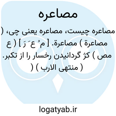 ( مصاعرة ) مصاعرة. [ م ُ ع َ رَ ] ( ع مص ) کژ گردانیدن رخسار را از تکبر. ( منتهی الارب ) ( آنندراج ). کج گردانیدن روی خود را از تکبر. ( ناظم الاطباء ). رخ کژبکردن. ( تاج المصادر بیهقی ). رخ کژ کردن. ( دهار ).