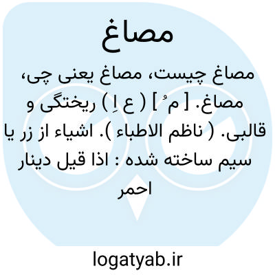مصاغ. [ م ُ ] ( ع اِ ) ریختگی و قالبی. ( ناظم الاطباء ). اشیاء از زر یا سیم ساخته شده: اذا قیل دینار احمر فکأنما ذکرت حرمة له و ان حصل فی یده فکأنما جأت بشارة الجنة له و مقدار ما حدث، انه خرج من القصر مابین درهم و دینار و مصاغ و جوهر و نحاس و ملبوس و اثاث و قماش و سلاح... و لایقدر علی حسابه الا من یقدر علی حساب الخلق فی الاَّخرة. ( النقود العربیه ص 59 و 60 ).