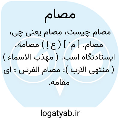مصام. [ م َ ] ( ع اِ ) مصامة. ایستادنگاه اسب. ( مهذب الاسماء ) ( منتهی الارب ): مصام الفرس؛ ای مقامه.
