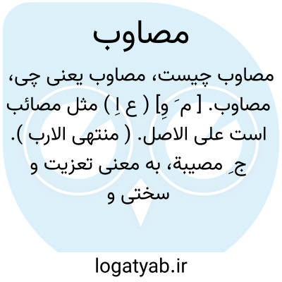 مصاوب. [ م َ وِ] ( ع اِ ) مثل مصائب است علی الاصل. ( منتهی الارب ). ج ِ مصیبة، به معنی تعزیت و سختی و اندوه رسنده به کسی. ( آنندراج ). || ج ِ مصوبه. ( ناظم الاطباء ).
