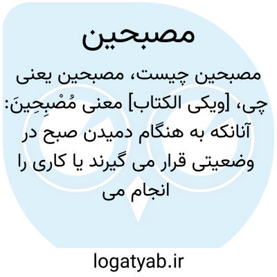 دانشنامه اسلامی [ویکی الکتاب] معنی مُصْبِحِینَ: آنانکه به هنگام دمیدن صبح در وضعیتی قرار می گیرند یا کاری را انجام می دهند.(مثلاً "فَتَنَادَوْاْ مُصْبِحِینَ " یعنی یکدیگر را صبح زود صدا زدند)ریشه کلمه: صبح (۴۵ بار)