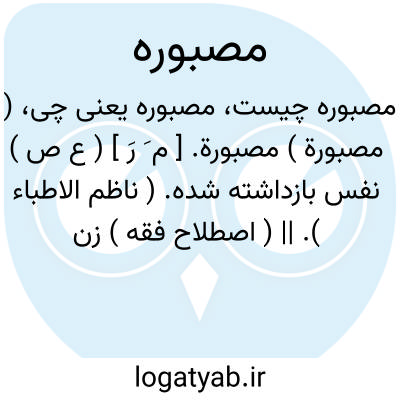 ( مصبورة ) مصبورة. [ م َ رَ ] ( ع ص ) نفس بازداشته شده. ( ناظم الاطباء ). || ( اصطلاح فقه ) زن بازداشته شده جهت کشتن. ( منتهی الارب )( آنندراج ) ( ناظم الاطباء ). در اصطلاح فقه، زنی که زخم زده می شود و محبوس می گردد تا بمیرد. ( از شرایع محقق حلی ). || ( اِ ) سوگند. ( منتهی الارب ) ( آنندراج ) ( مهذب الاسماء ). سوگند و یمین. ( ناظم الاطباء ).