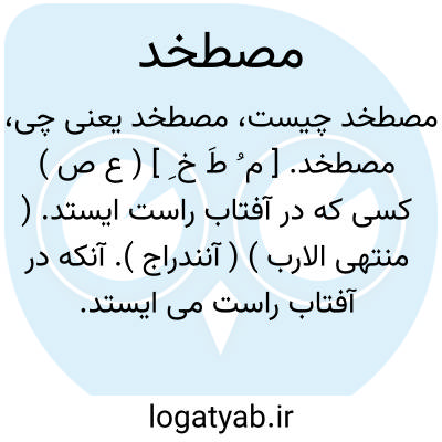 لغت نامه دهخدا مصطخد. [ م ُ طَ خ ِ ] ( ع ص ) کسی که در آفتاب راست ایستد. ( منتهی الارب ) ( آنندراج ). آنکه در آفتاب راست می ایستد. ( ناظم الاطباء ).