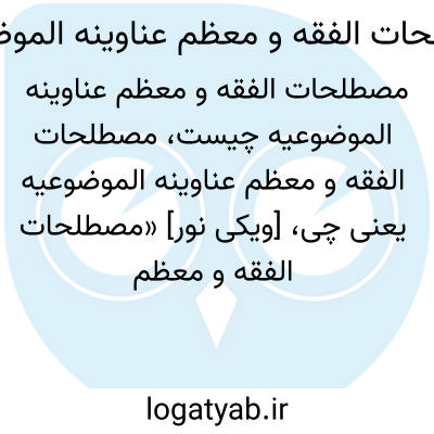 [ویکی نور] «مصطلحات الفقه و معظم عناوینه الموضوعیة»، اثر آیة الله علی مشکینی، بیان، توضیح و بررسی برخی از اصطلاحات فقهی و اصولی می باشد که به زبان عربی و در سال 1419ق1377/ش، نوشته شده است.