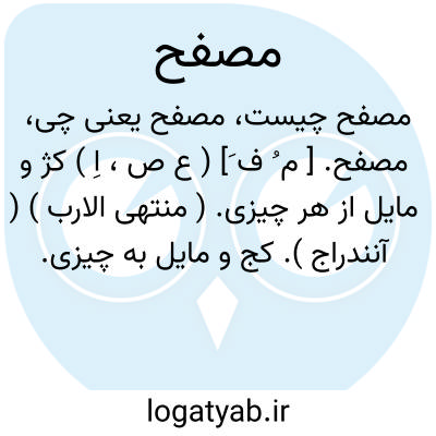 مصفح. [ م ُ ف َ] ( ع ص، اِ ) کژ و مایل از هر چیزی. ( منتهی الارب ) ( آنندراج ). کج و مایل به چیزی. ( ناظم الاطباء ). || پهن از هر چیزی. ( منتهی الارب ) ( ناظم الاطباء ) ( آنندراج ). پهناور. ( از اقرب الموارد ). || سیف مصفح؛ تیغ پهناور. ( منتهی الارب ) ( ناظم الاطباء ) ( آنندراج ). || صدر مصفح؛ سینه پهناور. ( از منتهی الارب ) ( ناظم الاطباء ). || ( اِ ) روی نرم و نیکو. || بینی که استخوان آن معتدل باشد. ( منتهی الارب ) ( آنندراج ) ( ناظم الاطباء ) ( از اقرب الموارد ). || سری که دو صدغ وی فرورفته و مابین پیشانی و پس گردن آن دراز باشد. ( از اقرب الموارد ) ( ناظم الاطباء ). سر تنگ دراز. پیشانی دراز و پست گردن. || آنکه هر دو جنب سر او پست و پیشانی او برآمده باشد. ( منتهی الارب ) ( آنندراج ). || مقلوب. ( اقرب الموارد ). || هر دلی که در آن ایمان و نفاق فراهم آمده باشد. ( منتهی الارب ) ( ناظم الاطباء ) ( آنندراج ) ( از اقرب الموارد ). || تیر ششم از تیرهای قمار. ( از اقرب الموارد ) ( ناظم الاطباء ). تیر ششم قمار، و آن را مسهل هم گویند. ( منتهی الارب ) ( آنندراج ). تیر ششم قمار. ( مهذب الاسماء ).