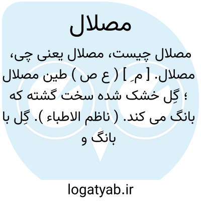مصلال. [ م ِ ] ( ع ص ) طین مصلال؛ گِل خشک شده سخت گشته که بانگ می کند. ( ناظم الاطباء ). گِل با بانگ و فریاد. ( منتهی الارب ) ( آنندراج ).