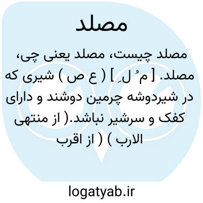 مصلد. [ م ُ ل ِ ] ( ع ص ) شیری که در شیردوشه چرمین دوشند و دارای کفک و سرشیر نباشد.( از منتهی الارب ) ( از اقرب الموارد ) ( ناظم الاطباء ).