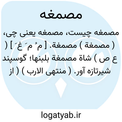 لغت نامه دهخدا ( مصمغة ) مصمغة. [ م ُ م َ غ َ ] ( ع ص ) شاة مصمغة بلبنها؛ گوسپند شیرتازه آور. ( منتهی الارب ) ( از ناظم الاطباء ).