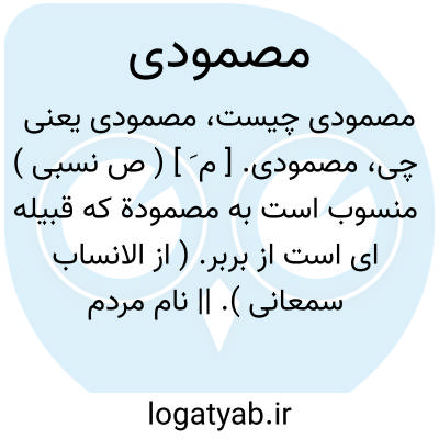 مصمودی. [ م َ ] ( ص نسبی ) منسوب است به مصمودة که قبیله ای است از بربر. ( از الانساب سمعانی ). || نام مردم قبیله ساکن سرزمینی بنام آنان مصمودیان یا مصامده ( در سودان ) از این قبیله گروهی حدود بیست هزار نفر در عداد لشکریان خلیفه فاطمی، المستنصرباﷲ بوده اند و ناصرخسرو در سفرنامه آرد: گروهی را مصامده می گفتند، ایشان سیاهانند از سرزمین مصمودیان و گفتند بیست هزار مردند. ( سفرنامه ص 83 ). و رجوع به مصامدة شود.