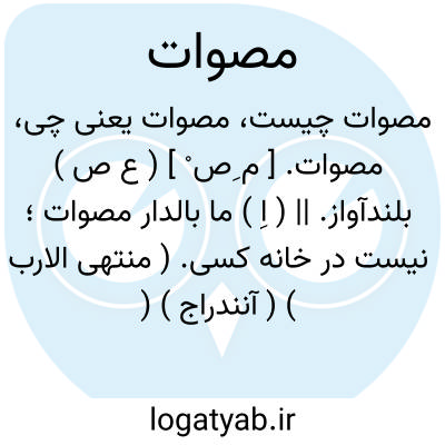 مصوات. [ م ِص ْ ] ( ع ص ) بلندآواز. || ( اِ ) ما بالدار مصوات؛ نیست در خانه کسی. ( منتهی الارب ) ( آنندراج ) ( ناظم الاطباء ).