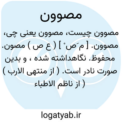 مصوون. [ م َص ْ ] ( ع ص ) مصون. محفوظ. نگاهداشته شده، و بدین صورت نادر است. ( از منتهی الارب ) ( از ناظم الاطباء ) ( از اقرب الموارد ). و رجوع به مصون شود.