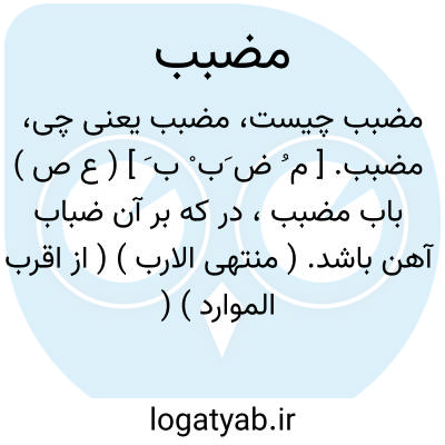 مضبب. [ م ُ ض َب ْ ب َ ] ( ع ص ) باب مضبب، در که بر آن ضباب آهن باشد. ( منتهی الارب ) ( از اقرب الموارد ) ( آنندراج ). دری که بر آن گل میخ آهن باشد. ( ناظم الاطباء ).