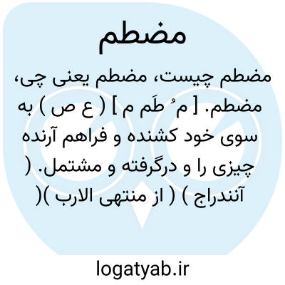 لغت نامه دهخدا مضطم. [ م ُ طَم م ] ( ع ص ) به سوی خود کشنده و فراهم آرنده چیزی را و درگرفته و مشتمل. ( آنندراج ) ( از منتهی الارب )( از اقرب الموارد ). به سوی خود کشیده شده و فراهم آورده و مشتمل شونده و درگیرنده چیزی. ( ناظم الاطباء ).