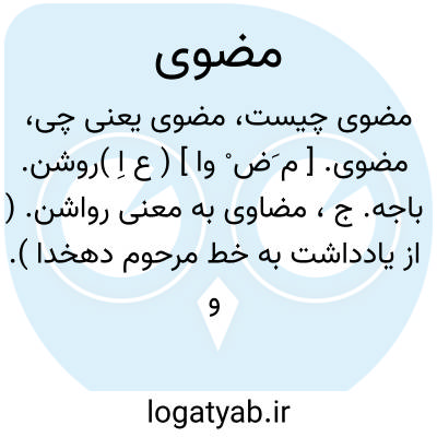 مضوی. [ م َض ْ وا ] ( ع اِ )روشن. باجه. ج، مضاوی به معنی رواشن. ( از یادداشت به خط مرحوم دهخدا ). و رجوع به مِضْواء و مضاوی شود.