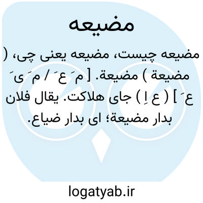 ( مضیعة ) مضیعة. [ م َ ع َ / م َ ی َ ع َ ] ( ع اِ ) جای هلاکت. یقال فلان بدار مضیعة؛ ای بدار ضیاع. ( منتهی الارب ) ( از اقرب الموارد ) ( از محیطالمحیط ). جای هلاکت. ( آنندراج ). جایی که انسان در وی هلاک میگردد. هو بدار مضیعة؛ یعنی او در خانه هلاک است که مراد بیابان باشد. || هو مقیم بدار مضیعة؛ یعنی شعار او در کارهای خود سستی و کسالت است. ( ناظم الاطباء ).