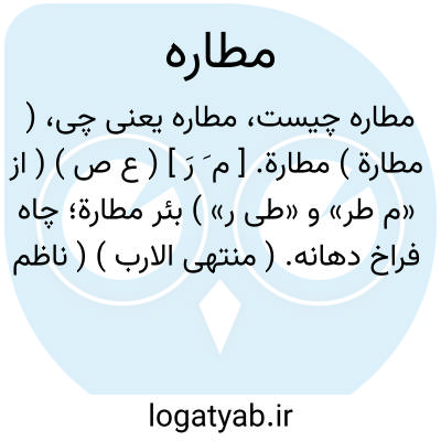 مطاره. [ م َطْطا رَ ] ( از ع، اِ ) مأخوذ از مطهره تازی، آوندی چرمین که در آن آب کنند و در سفر با خود بردارند. ( ناظم الاطباء ): چون به پیش آب رسیدند دست به پشت اسب مالیدند و یک غرفه آب بر گرفتند و در مطاره ریختند. ( قصص الانبیاء ص 143 ). و رجوع به متاره شود.
