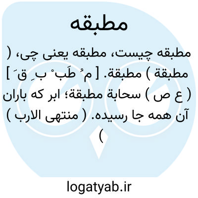 ( مطبقة ) مطبقة. [ م ُ طَب ْ ب ِ ق َ ] ( ع ص ) سحابة مطبقة؛ ابر که باران آن همه جا رسیده. ( منتهی الارب ) ( آنندراج ) ( ناظم الاطباء ) ( از محیطالمحیط ) ( از اقرب الموارد ). ابری که همه آسمان بپوشد. ( یادداشت به خط مرحوم دهخدا ).
