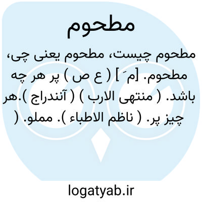 مطحوم. [م َ ] ( ع ص ) پر هر چه باشد. ( منتهی الارب ) ( آنندراج ).هر چیز پر. ( ناظم الاطباء ). مملو. ( اقرب الموارد ).