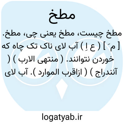 مطخ. [ م َ ] ( ع اِ ) آب لای ناک تک چاه که خوردن نتوانند. ( منتهی الارب ) ( آنندراج ) ( ازاقرب الموارد ). آب لای ناک تک چاه و یا حوض که در آن کرمهای سیاه باشد و خوردن نتوانند. ( ناظم الاطباء ).