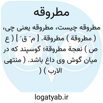 ( مطروقة ) مطروقة. [ م َ ق َ ] ( ع ص ) نعجة مطروقة؛ گوسپند که در میان گوش وی داغ باشد. ( منتهی الارب ) ( ناظم الاطباء ) ( از اقرب الموارد ).