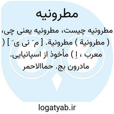 ( مطرونیة ) مطرونیة. [ م َ نی ی َ ] ( معرب، اِ ) مأخوذ از اسپانیایی. مادرون بج. حماالاحمر قطلب. ( یادداشت به خط مرحوم دهخدا ). و رجوع به ماده قبل شود.