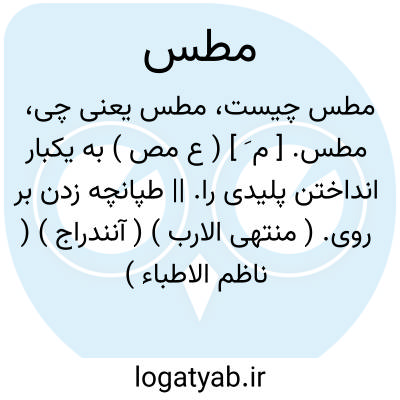 مطس. [ م َ ] ( ع مص ) به یکبار انداختن پلیدی را. || طپانچه زدن بر روی. ( منتهی الارب ) ( آنندراج ) ( ناظم الاطباء ) ( از اقرب الموارد ).