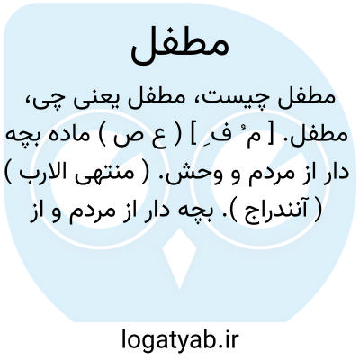 مطفل. [ م ُ ف ِ ] ( ع ص ) ماده بچه دار از مردم و وحش. ( منتهی الارب ) ( آنندراج ). بچه دار از مردم و از جانوران. ( ناظم الاطباء ) ( از اقرب الموارد ) ( از محیطالمحیط ). || لیلة مطفل؛ شبی که از سردی طفلان را هلاک گرداند. ( منتهی الارب ) ( از آنندراج ) ( از ناظم الاطباء ) ( از اقرب الموارد ) ( از محیط المحیط ).