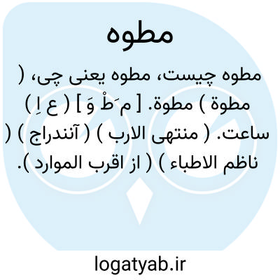 ( مطوة ) مطوة. [ م َطْ وَ ] ( ع اِ ) ساعت. ( منتهی الارب ) ( آنندراج ) ( ناظم الاطباء ) ( از اقرب الموارد ). یقال: مضت من اللیل مطوة؛ ای ساعة. || دفعه. ( از اقرب الموارد ).