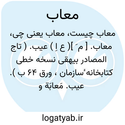 معاب. [ م َ ]( ع اِ ) عیب. ( تاج المصادر بیهقی نسخه خطی کتابخانه ٔسازمان، ورق 64 ب ). عیب. مَعابَة و معیب مثل آن است. ج، معائب. ( منتهی الارب ). عیب. معابة. ج، معایب. ( از اقرب الموارد ). || جای عیب. ( منتهی الارب ) ( ناظم الاطباء ). || ( مص ) عیب کردن. ( تاج المصادر بیهقی ). عیب ناک گردیدن. ( از ناظم الاطباء ).