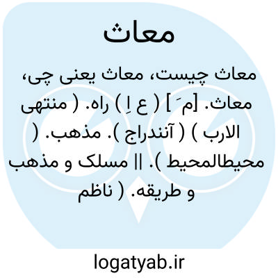 لغت نامه دهخدا معاث. [م َ ] ( ع اِ ) راه. ( منتهی الارب ) ( آنندراج ). مذهب. ( محیطالمحیط ). || مسلک و مذهب و طریقه. ( ناظم الاطباء ) ( از اقرب الموارد ). مسلک. ( محیطالمحیط ). || رسم و قانون. ( ناظم الاطباء ). || جای فراخ. ( منتهی الارب ) ( آنندراج ) ( از محیط المحیط ). جای پهن و گشاده. ( ناظم الاطباء ) ( از اقرب الموارد ). || گذرگاه. ( منتهی الارب ) ( آنندراج ).