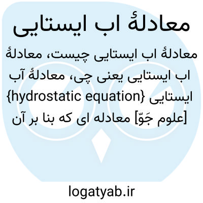 {hydrostatic equation} [علوم جَوّ] معادله ای که بنا بر آن مؤلفۀ قائم نیروی فشار برابر با نیروی گرانی است