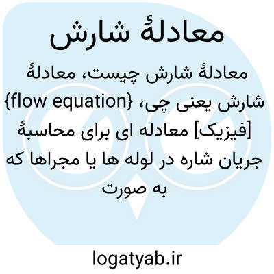 {flow equation} [فیزیک] معادله ای برای محاسبۀ جریان شاره در لوله ها یا مجراها که به صورت رابطۀ میان خواص شاره (چگالی و چسبندگی )، شرایط محیط (دما یا فشار ) و شرایط و هندسۀ لوله و مجرا (قطر و شکل سطح مقطع و میزان همواری سطح داخلی ) بیان می شود