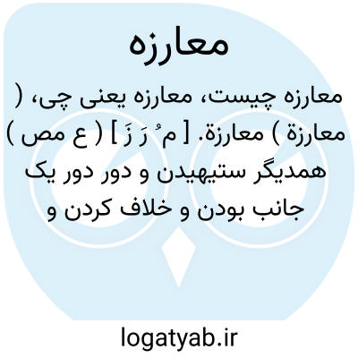 ( معارزة ) معارزة. [ م ُ رَ زَ ] ( ع مص ) همدیگر ستیهیدن و دور دور یک جانب بودن و خلاف کردن و خشم گرفتن. ( منتهی الارب ) ( آنندراج ) ( از ناظم الاطباء ) ( از اقرب الموارد ). معاندت، مجانبت. مخالفت. مغاضبت. ( یادداشت به خط مرحوم دهخدا ). || گرفته و ترنجیده شدن. ( منتهی الارب ) ( آنندراج ) ( ناظم الاطباء ). منقبض شدن. ( از اقرب الموارد ).