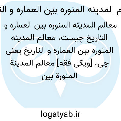 [ویکی فقه] معالم المدینة المنورة بین العمارة و التاریخ (کتاب). «معالم المدینه المنوره بین العماره و التاریخ»، تالیف عبدالعزیز عبدالرحمن بن ابراهیم کعکی، اثری دائرة المعارفی و بی مانند، درباره تاریخ و جغرافیای شهر مدینه است که با بهره گیری از بهترین نقشه ها و تصویرها، عرضه شده است.کتاب به زبان عربی و در سال ۱۴۱۸ ق نوشته شده است.